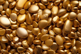 A stunning photograph capturing the mesmerizing texture of golden pebbles, adding a touch of opulence to any design project.
